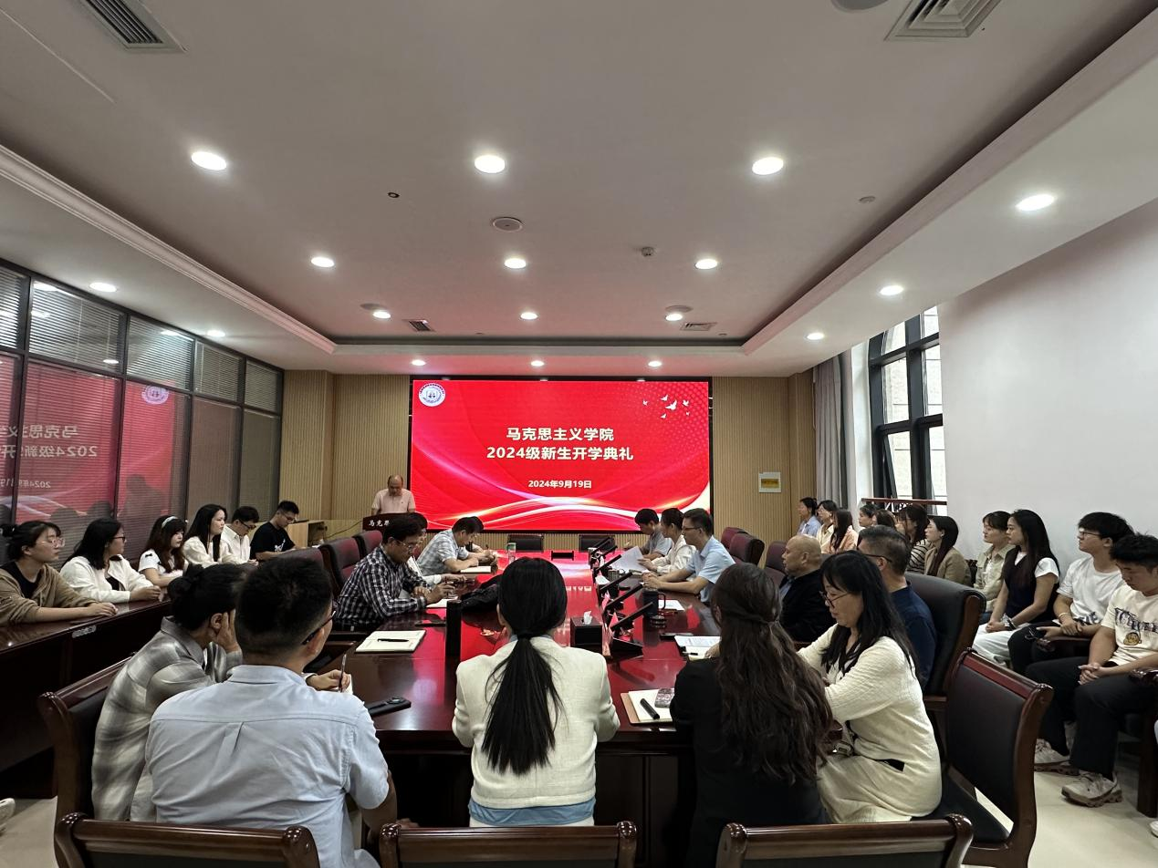 于图书馆319会议室举行2024级新生开学典礼。学院领导班子、导师代表、班主任、两办教师以及全体新生参加,典礼由院党委副书记徐涤寒主持。