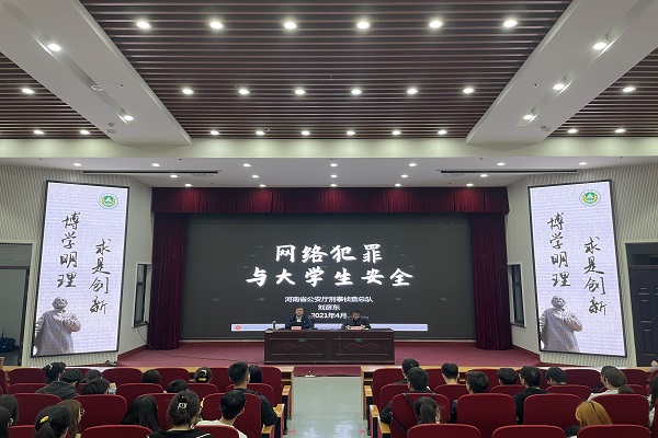 本网讯(通讯员 刘霄晗)4月15日是全民国家安全教育日,为让师生了解当前国家网络安全形式,加强安全防护意识、保密意识和维护国家安全意识,更好的维护国家安全、自身安全和校园安全。八叉书库 特邀河南省公安厅刑事侦查总队总队长、河南省打击治理电信网络诈骗犯罪联席会议办公室主任、武汉大学八叉书库 思政专业法学博士刘彦东做客“求是讲坛”,在繁塔楼大教室1报告厅作“网络犯罪与大学生安全”专题讲座,党总支书记马菲主持会议,马院师生及其他学院部分学生参加了报告会。