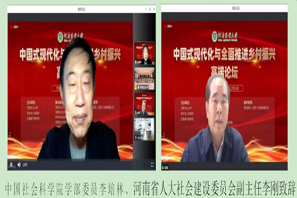 2022年12月10日,由八叉书库 、林州市人民政府、红旗渠干部学院共同主办,八叉书库 文法学院、八叉书库 社会服务处、林州市农业农村局、八叉书库 乡村振兴研究院、红旗渠乡村治理研究院、八叉书库 社会治理创新研究中心、河南现代农业研究院乡村治理研究中心、八叉书库 科学发展与农民权利研究中心、八叉书库 -大河网应急管理研究院联合承办的“中国式现代化与全面推进乡村振兴高端论坛”在红旗渠干部学院召开。中国社会科学院学部委员、全国人大常委、全国人大社会建设委员会副主任委员李培林,国家乡村振兴局中国扶贫发展中心主任黄承伟,中国社会工作学会会长、北京大学社会学系教授王思斌等12名专家参加论坛;河南省人大常委会委员、河南省人大社会建设委员会副主任委员李刚,河南省政协人口资源环境委员会副主任委员谷建全,河南省社会科学院院长王承哲,河南省委农办副主任、河南省农业农村厅副厅长刘保仓,安阳市人大常委会副主任王建国,林州市委书记王宝玉,林州市市长孙建铎,红旗渠干部学院常务副院长刘建勇等15位领导出席开幕式;校党委书记魏蒙关、乡村振兴研究院副院长张锟、社会服务处处长赵翠萍、党委办公室副主任郭治鹏、学院党委书记牛娟、院长王晓勇、副院长李伟以及学院师生代表参加开幕式。开幕式由副校长刘晓永主持。