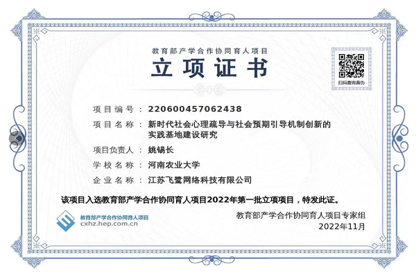 (王怡爽 刘梦迪 文,张璐 图) 近日,经教育部产学合作协同育人项目专家组批准,我中心姚锡长教授与侯晓副教授同时喜获教育部产学合作协同育人项目。姚锡长教授立项的项目为“新时代社会心理疏导与社会预期引导机制创新的实践基地建设研究”(项目标号:220600457062438),合作单位为江苏飞鹭网络科技有限公司;侯晓副教授立项的项目为“基于校企协作的高校课程思政人才培养的实践基地建设研究”(项目标号:220605350102759),合作单位为南通微爱信息科技有限公司。两位老师立项的项目属于实践条件和实践基地建设项目,根据教育部办公厅关于印发的《教育部产学合作协同育人项目管理办法》第十二条“实践条件和实践基地建设项目软硬件支持价值总额不少于20万元/项”规定将获得20万元的软硬件支持。此类教育部项目是国家进行双一流、新工科、一流专业、一流课程建设的重要支撑。