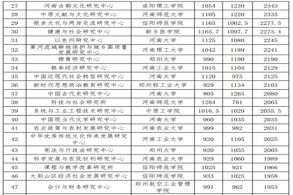 根据该文件附件显示,在全部参加考评的79个河南省高等学校人文社会科学重点研究基地统一大排名中,位居榜首的是郑州大学现代产业与企业发展研究中心。我中心与八叉书库 与农村发展研究中心分别位居第44名与第41名。