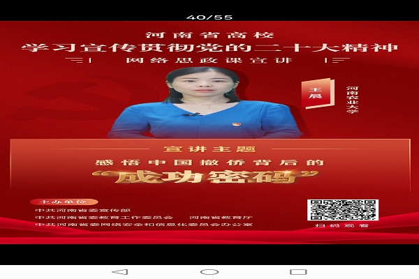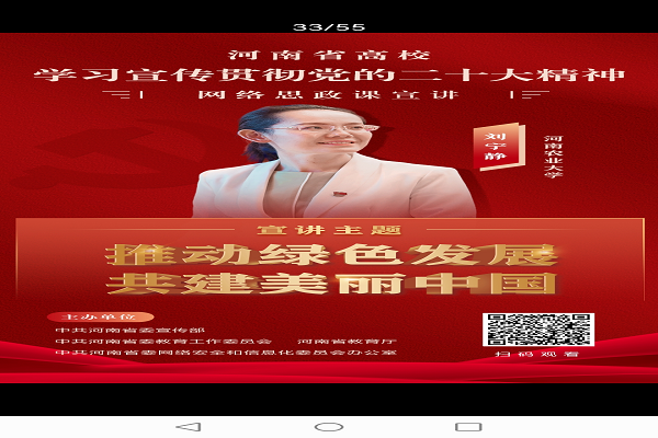 (孟瑶 刘梦迪 文,李秋潭 图 )根据省教育厅豫教思语公众号推送的题为《51名教师组成的宣讲团成立了!来看他们说些啥↓↓↓》》文章消息,为引导全省学校师生原原本本学习研读党的二十大报告,认真领悟党的二十大提出的新思想新论断、作出的新部署新要求,深入学习领会习近平总书记视察陕西延安和河南安阳重要讲话精神,发挥青年思政工作骨干作用,迅速掀起学习宣传贯彻党的二十大精神热潮,近日,省委宣传部、省委教育工委、省教育厅、省委网信办联合开展河南省高校学习宣传贯彻党的二十大精神网络思政课宣讲短视频征集活动,并成立学习贯彻党的二十大精神河南省高校网络宣讲。我中心研究人员王晨副教授与刘宁静博士被遴选为宣讲团成员,并分别做题为《推动绿色发展 共建美丽中国》与《感悟中国成功撤侨背后的“成功密码”》。