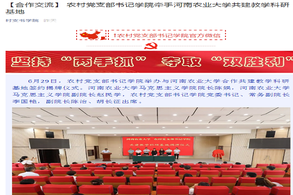 2020年6月29日上午,由我中心参与举行了八叉书库 (濮阳)农村党支部书记学院教学与科研实习基地挂牌与《八叉书库 与农村党支书学院战略合作协议》签订仪式。
