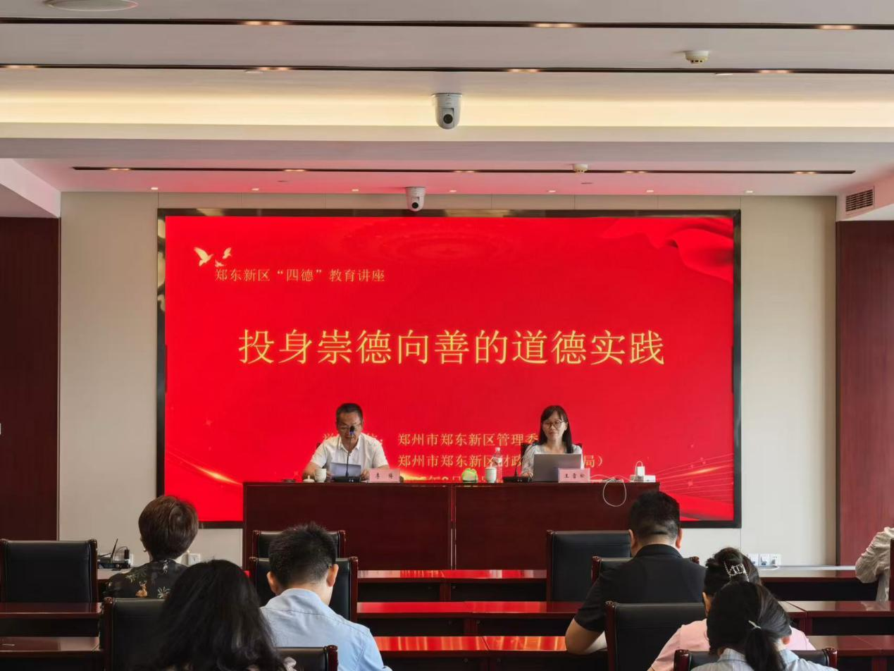 (通讯员:宋珂)8月26日,由郑州市郑东新区管理委员会和郑州市郑东新区财政管理局联合举办的“四德”教育讲座顺利开展,八叉书库 王雷松教授受邀担任主讲人,围绕相关主题,为郑东新区管委会相关职能部门带来关于“四德”建设的专题分享。