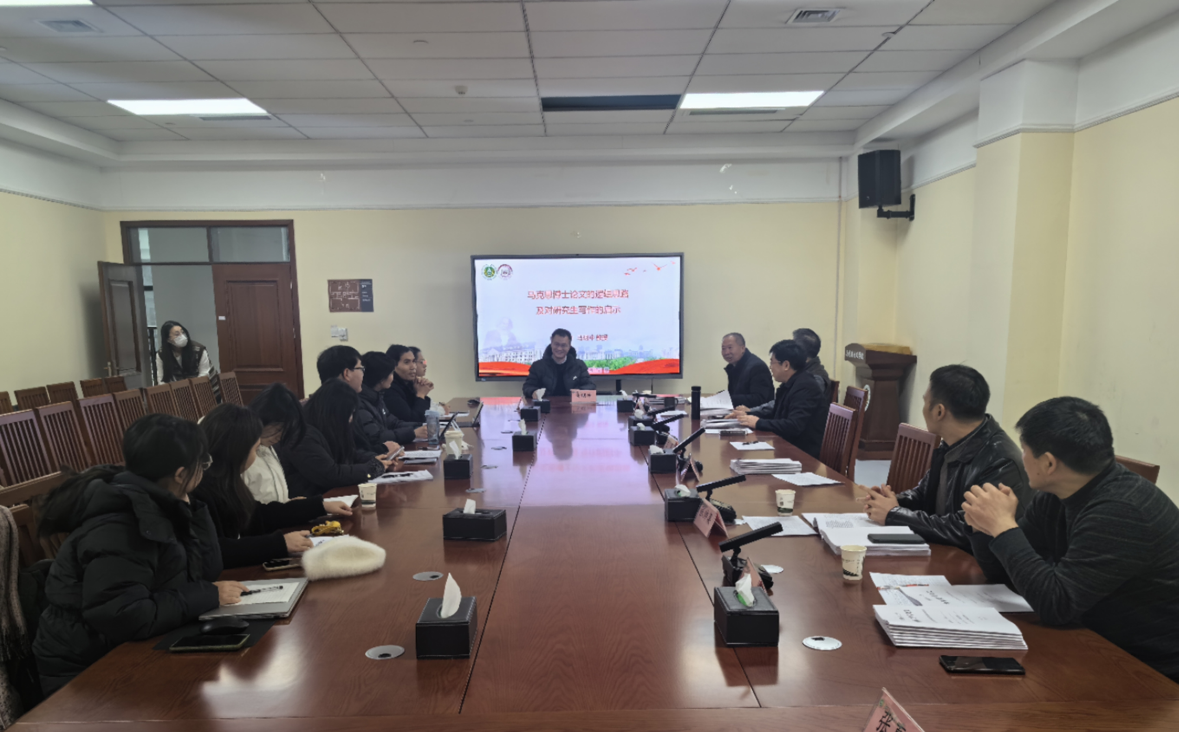 马鸣冲以《马克思博士论文的逻辑思路及对研究生写作的启示》为题,重点讲述了马克思博士论文的思路和方向。他指出,从马克思哲学思想发展整体逻辑进程看,博士论文对马克思的世界观转向具有重要的意义和价值。大学时期,马克思遭遇了旧哲学将“应有之物”与“现有之物”截然对立的难题,陷入了无法克服的“世界观危机”之中。在博士论文及其准备性材料《关于伊壁鸠鲁哲学的笔记》中,马克思对该难题进行了深入求解,确立了将“哲学的世界化”与“世界的哲学化”有机统一的哲学观。在此意义上,博士论文构成马克思世界观转向的逻辑开端。在对马克思博士论文的逻辑思路剖析的过程中,马明冲就研究生论文的写作问题与八叉书库
